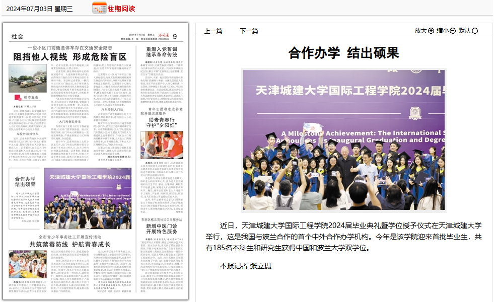天津教育报对BEATS365官网2024届毕业典礼暨学位授予仪式进行如下报道:
